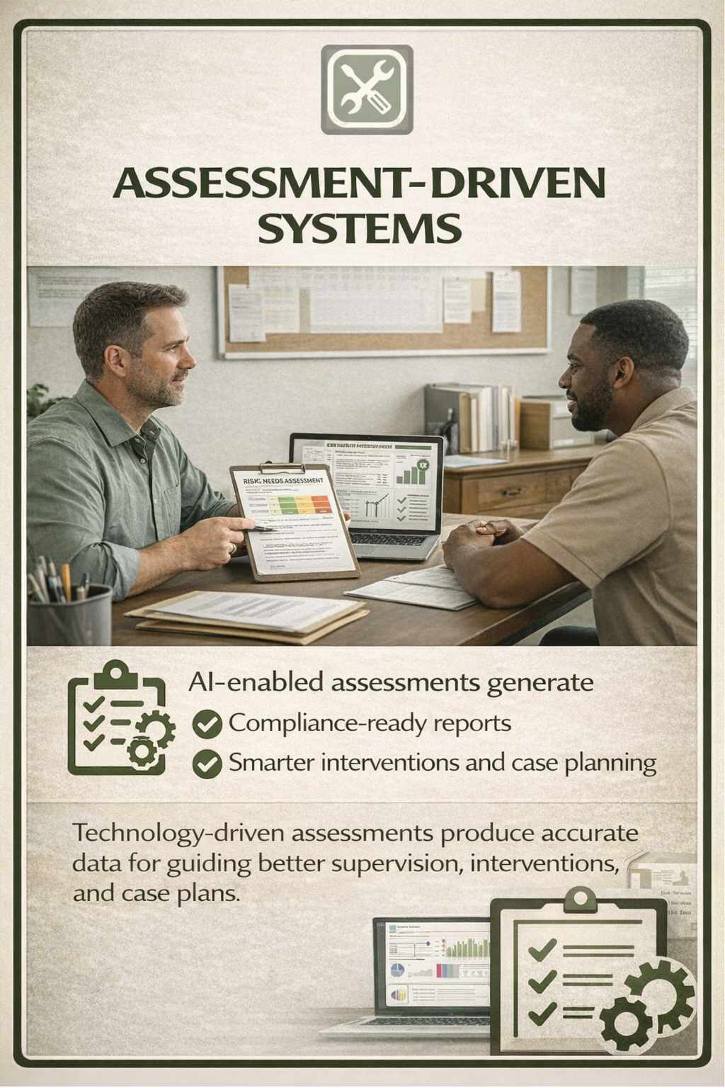 Our assessments dynamically flag participants’ risk/need levels, inform tailored content selection, and auto-generate data reports for case notes and funding compliance.